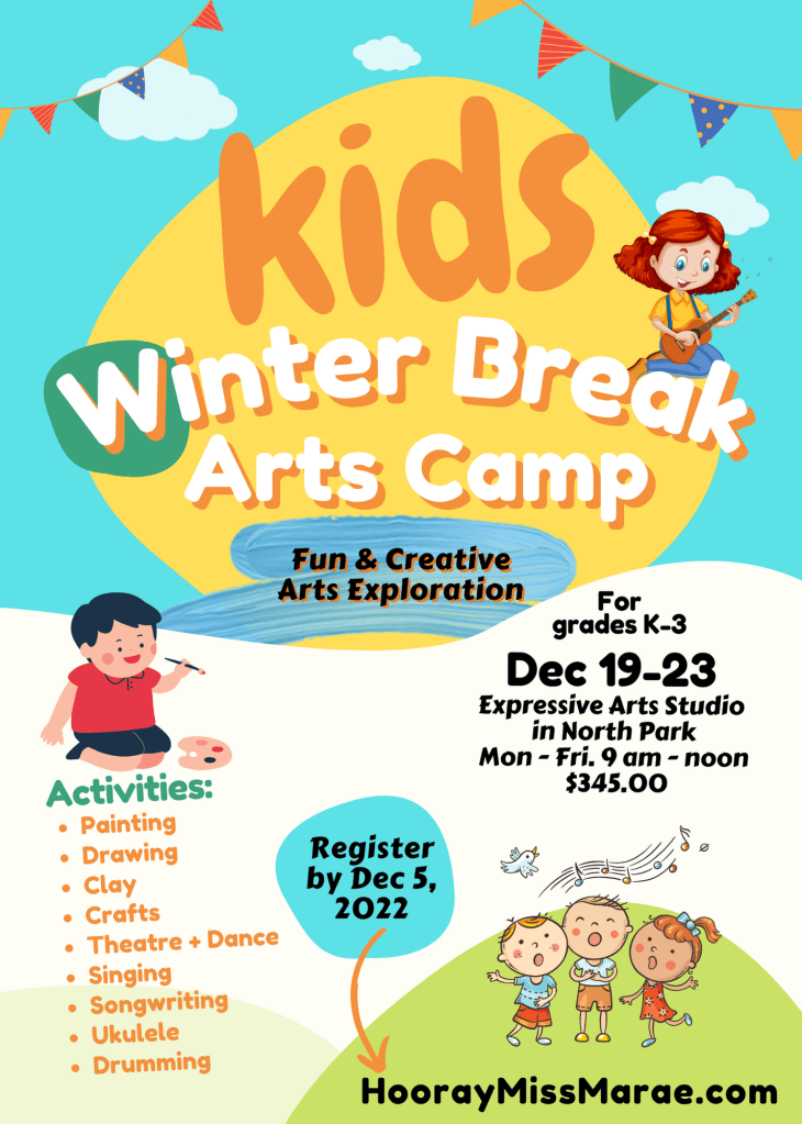 - Winter Break Arts Camp 9:00 am-12pm. Mon, Dec 19 – Fri, Dec 23, 2022.